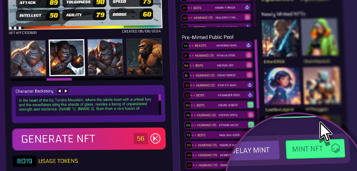 Designed with utility for future Games, Interactive Education and DApps, our NFTs empower members with low minting costs and large scale investment opportunities.